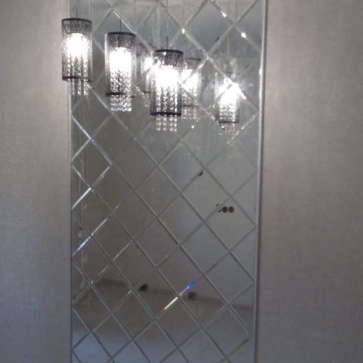 Использована зеркальная плитка "вытянутый ромб" с фацетом.