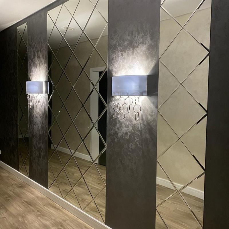 Использована серебристая зеркальная плитка "вытянутый ромб".
